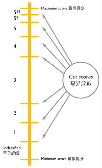 籠統來說,DSE等級分為5等,在最優秀的第5等級中,還會加設5*、5**兩個等級。所以可以認為這個考試總共有七個等級??梢岳斫鉃?,滿分7分,“3、3、2、2”相對應的就是學習成績中等的同學。