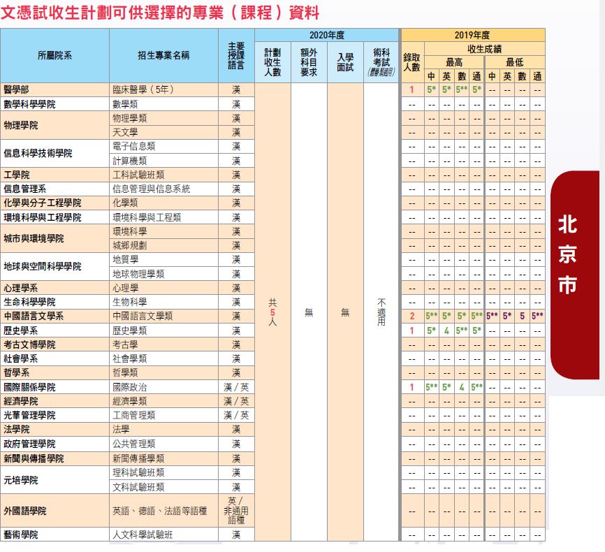 北京大學的最低錄取分數為4科23分(滿分28分)。
