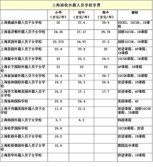 以上外籍學校,學費均在都在15-30萬區間,其中20萬占了絕大多數。