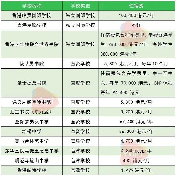 億米君給大家整理了一份香港的寄宿學校名單: