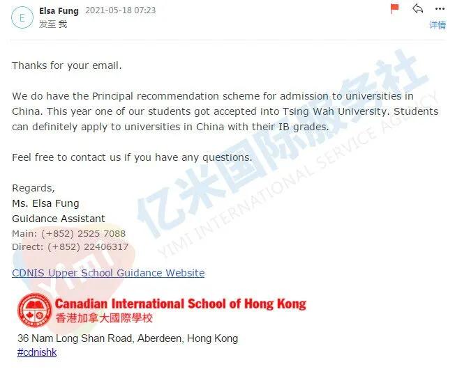 除了DSE,香港國(guó)際生可憑借國(guó)際考試成績(jī),比如IB,A-level等申請(qǐng)內(nèi)地大學(xué)。像香港弘立,英基,耀中國(guó)際,加拿大國(guó)際熱門國(guó)際學(xué)校,都有校長(zhǎng)推薦計(jì)劃。據(jù)在校老師分享,IB成績(jī)單科不低于5分,一般就可以獲得推薦名額。
