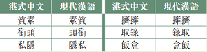 兩個字都一樣,偏偏順序不同:標準中文里的吃盒飯,在港式中文里面是吃飯盒。再比如,拿到offer的時候,我們標準中文會說錄取,但港式中文是取錄。