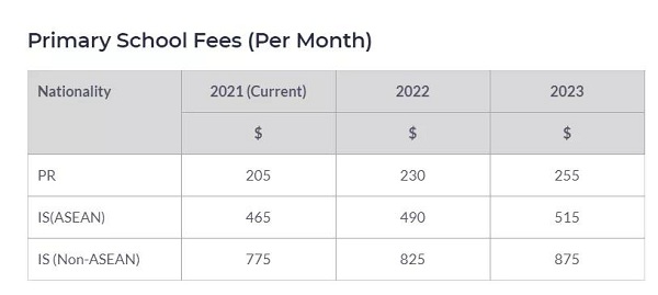 新加坡教育部指出,明、后兩年,本地永久居民的每月學費每年將調漲25新元到60新元不等,國際學生的學費漲幅則每年介于25新元到150新元不等。其中,來自非亞細安成員國的外籍學生的每月學費漲幅最大。小學生明、后兩年各漲50新元,后年達到875新元。