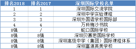 在榜單中,深圳地區有8所學校進入前一百名,八強名單如下:
