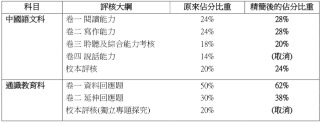 此次重點調整將取消中國語文科口試(卷四)及取消通識教育科的校本評核(獨立專題探究)。