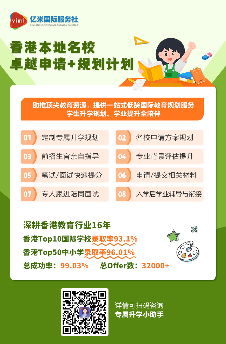 現(xiàn)在剛好是申請國際學(xué)校的最佳時機,很多國際學(xué)校有學(xué)位空缺,如果您也對香港國際學(xué)校感興趣,想送孩子入讀IB課程國際學(xué)校,可聯(lián)系我們詳細(xì)了解或申請!