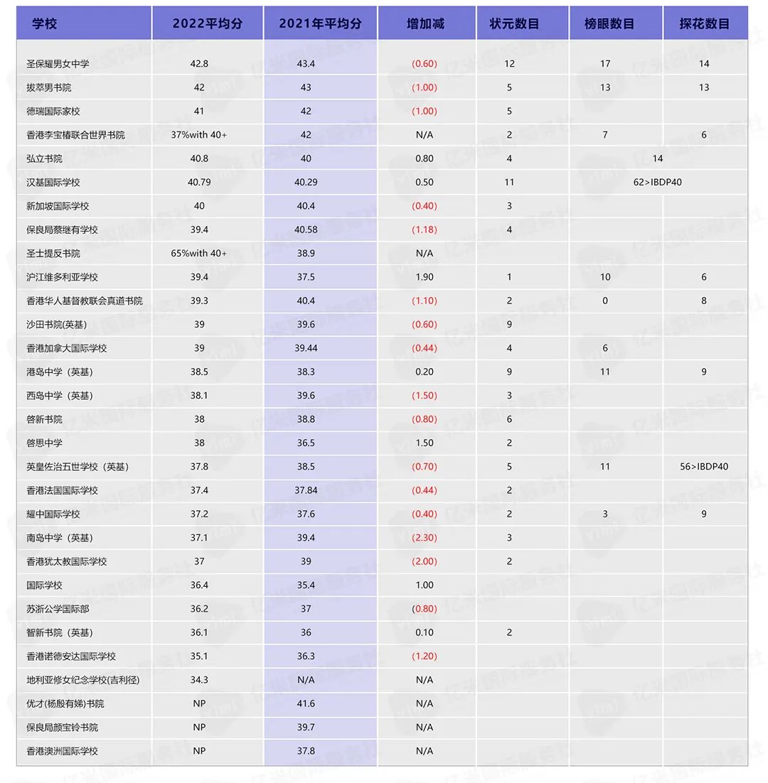 如果以IB均分來看,2022年香港排名前5的分別是: