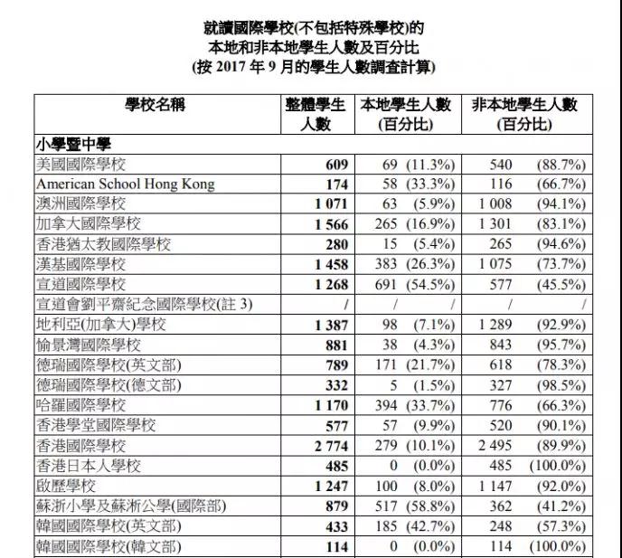 就讀香港國際學(xué)校本地和非本地人數(shù)百分比調(diào)查如下: