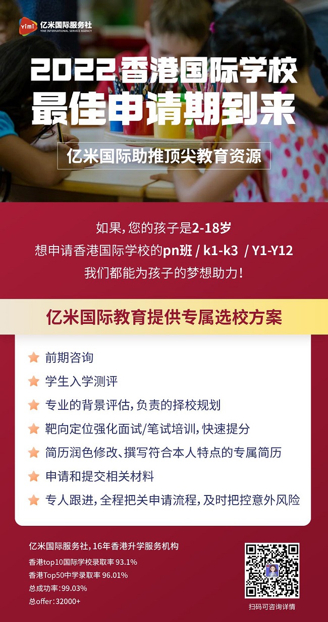 如果您給孩子申請(qǐng)/插班香港名校想要更有保障更穩(wěn)妥一點(diǎn),找經(jīng)驗(yàn)豐富的學(xué)位申請(qǐng)機(jī)構(gòu)根據(jù)孩子現(xiàn)階段水平量身制定擇校方案,不失為最佳申請(qǐng)途徑