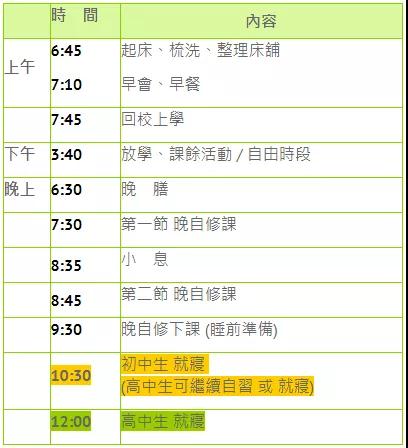 寄宿生作息時間