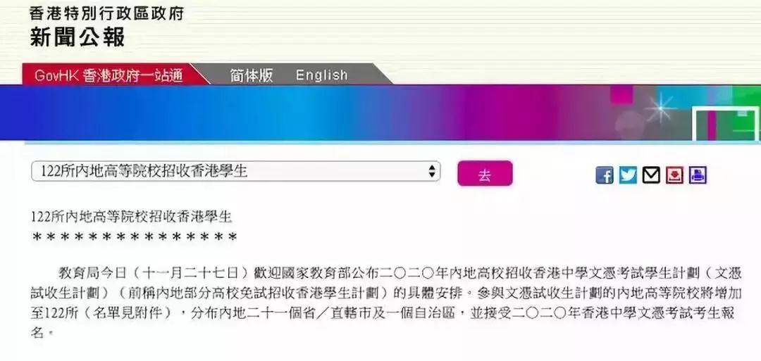 去年11月末發(fā)布,國家教育部公布2020年內(nèi)地部分高校免試招收香港學(xué)生計(jì)劃的具體安排。