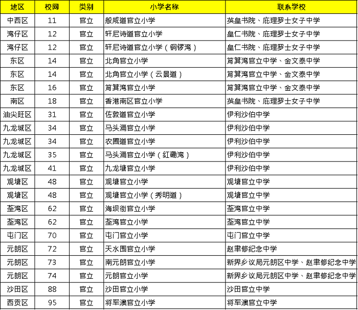 注:所有官立小學升上官中全是英中。