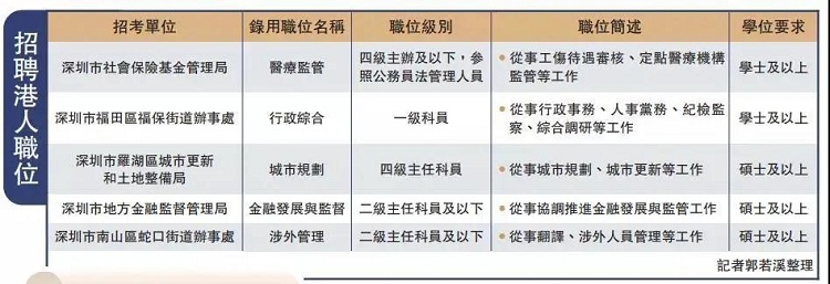 這是深圳首次專項招錄公務員,全面加大緊缺專業職位引才力度,更增設5職位定向港澳選拔優秀青年融入國家、參與大灣區建設。