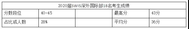 拿深圳的幾所獲得IB認證的國際學校來舉例對比一下,SWIS深外國際部2020屆畢業生共18名學生,40分以上的占28%,最高分43分,平均分36分,72%的學生被授予了雙語文憑。