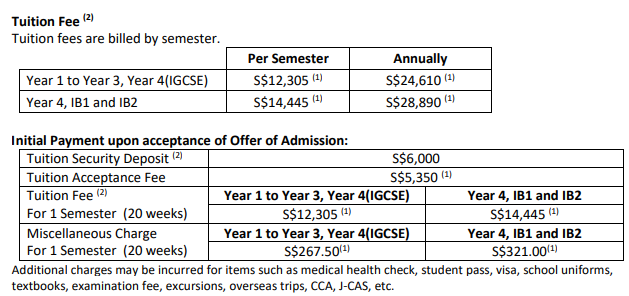 (新加坡華中國際際學校官網學費圖)