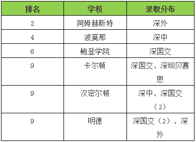 威廉姆斯學院、阿姆斯特學院和斯瓦斯莫爾學院排名第一、第二和第三。波莫那學院和韋爾斯利學院并列第四。