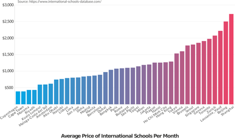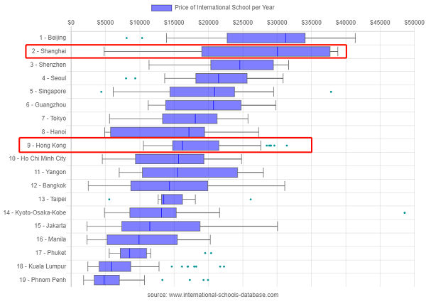 根據International Schools Database發布的亞洲國際學校學費排名,北京、上海、深圳拿下了榜單前三!而香港排在第9位。