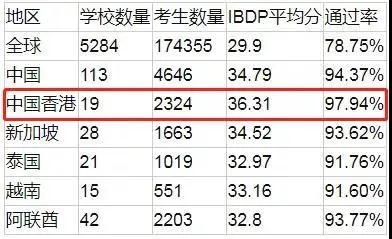 2020年全球共有140名學生獲得IB滿分「狀元」,而香港滿分者就有23人,占全球約16%。香港2020年IB成績平均分為36.31,通過率高達97.94%,高出世界IB平均分,再次排名第一!