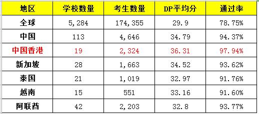 中國香港地區以36.31分的平均分再次蟬聯亞太區域IBDP考試成績的榜首,而中國大陸地區的DP平均成績則從去年的34.16上升為34.79,反超新加坡地區的34.52分,升至亞洲地區第二名。