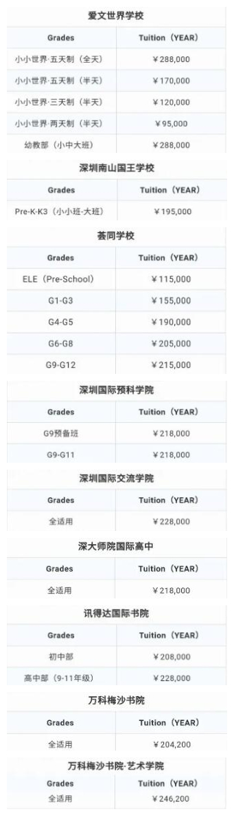 深圳國際學校學費已經達到全球第四,而且還在每年上漲,深國交最新招生簡章上學費上漲了近4萬,貝賽思新學年漲價近2萬,科愛賽預計上漲近7千,其他純外籍國際學校基本上都上漲1萬多,疫情也并沒有阻止國際學校漲價,不過據了解不少學校有給在讀家長做費用減免,也算是非常人性化了。