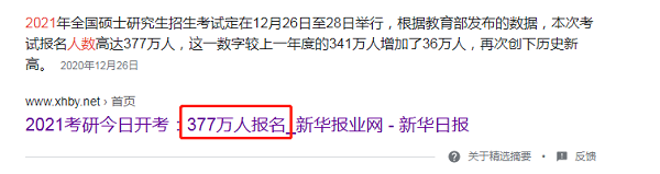 隨著就業(yè)形式的艱難,越來越多的畢業(yè)生選擇考研,考研人數(shù)劇增,報(bào)名人數(shù)已是屢創(chuàng)新高!根據(jù)教育部發(fā)布的數(shù)據(jù),2021年考研人數(shù)為377萬,這一數(shù)字較上一年度的341萬人增加了36萬人,再次創(chuàng)下歷史新高!