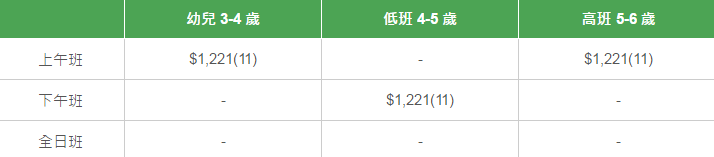 學校有參加「幼稚園教育計劃」,以下列出扣減政府資助后不同班別的全年學費和期數。