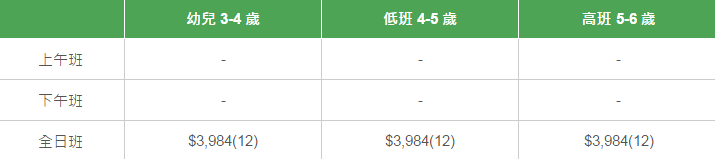 學校有參加「幼稚園教育計劃」,以下列出扣減政府資助后不同班別的全年學費和期數。
