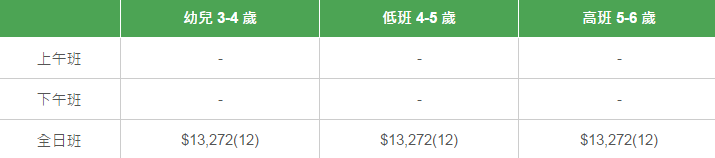 學校有參加「幼稚園教育計劃」,以下列出扣減政府資助后不同班別的全年學費和期數。