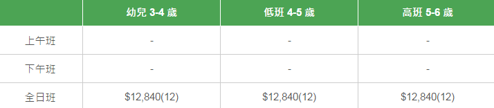 學校有參加「幼稚園教育計劃」,以下列出扣減政府資助后不同班別的全年學費和期數。