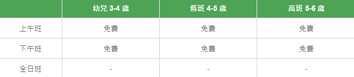 學校有參加「幼稚園教育計劃」,以下列出扣減政府資助后不同班別的全年學費和期數。