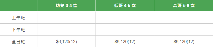 學校有參加「幼稚園教育計劃」,以下列出扣減政府資助后不同班別的全年學費和期數。