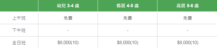 學校有參加「幼稚園教育計劃」,以下列出扣減政府資助后不同班別的全年學費和期數。