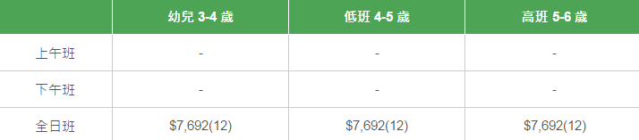 學校有參加「幼稚園教育計劃」,以下列出扣減政府資助后不同班別的全年學費和期數。