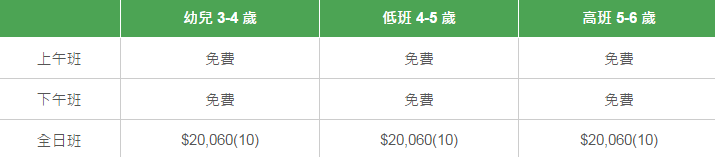 學(xué)校有參加「幼稚園教育計(jì)劃」,以下列出扣減政府資助后不同班別的全年學(xué)費(fèi)和期數(shù)。