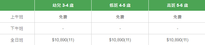 學校有參加「幼稚園教育計劃」,以下列出扣減政府資助后不同班別的全年學費和期數。