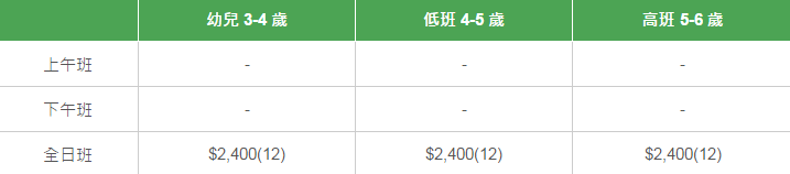 學校有參加「幼稚園教育計劃」,以下列出扣減政府資助后不同班別的全年學費和期數(shù)。