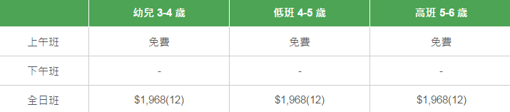 學校有參加「幼稚園教育計劃」,以下列出扣減政府資助后不同班別的全年學費和期數。