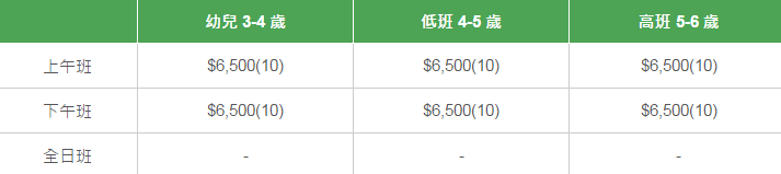 學校有參加「幼稚園教育計劃」,以下列出扣減政府資助后不同班別的全年學費和期數。