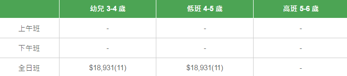 學校有參加「幼稚園教育計劃」,以下列出扣減政府資助后不同班別的全年學費和期數(shù)。