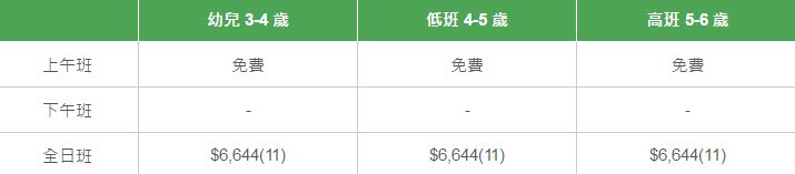 學校有參加「幼稚園教育計劃」,以下列出扣減政府資助后不同班別的全年學費和期數。