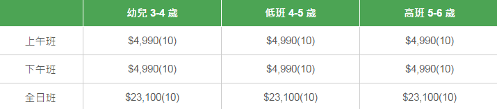 學校有參加「幼稚園教育計劃」,以下列出扣減政府資助后不同班別的全年學費和期數。