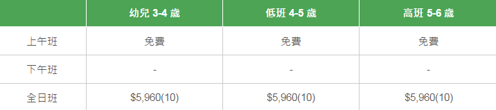 學校有參加「幼稚園教育計劃」,以下列出扣減政府資助后不同班別的全年學費和期數。