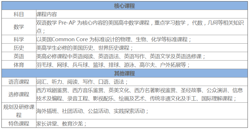 以STEAM為特色,導入美國加州知名藍帶學校的Pathway/gateway課程、學術研究課程等,融入豐富的國際化社會實踐及研學課程,配合持續的留學規劃輔導